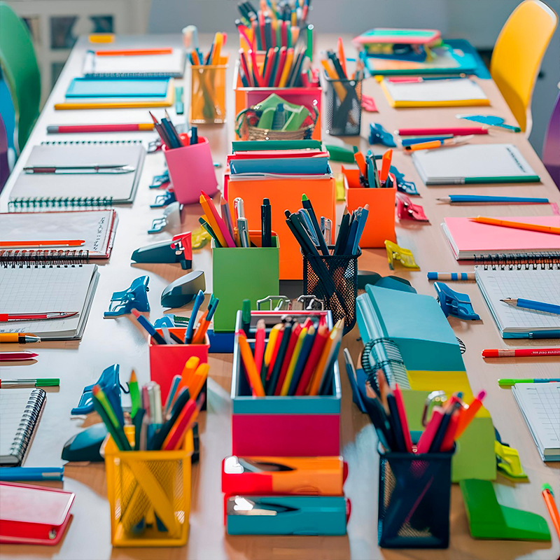 Incluye papelería, artículos escolares, regalos corporativos, souvenirs y accesorios de oficina.